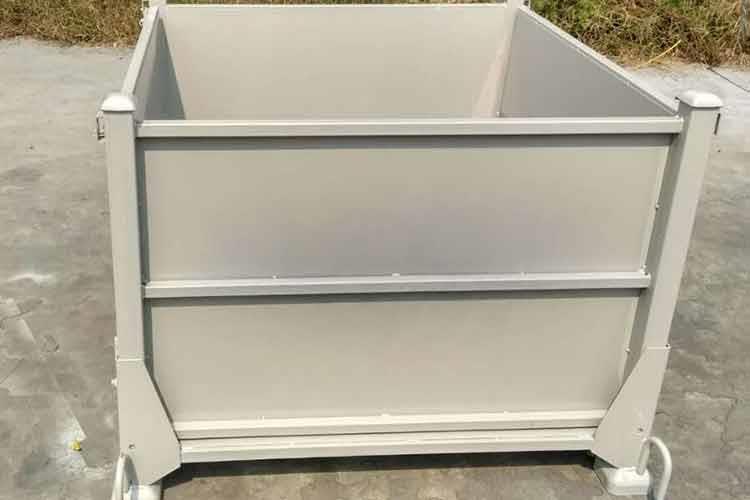 2、帶輪金屬周轉箱儲存方便,不占用倉庫固定空間,同時折疊式帶輪金屬周轉箱還可以折疊。不用時折疊起來運輸或存放更合理;