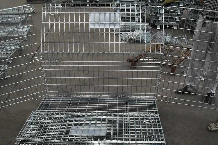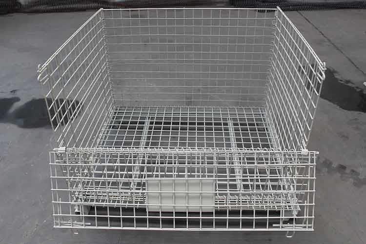 倉(cāng)儲(chǔ)籠的主要原材料是高線拉成的鋼絲,一般絲徑是5mm,6mm,6.4mm。網(wǎng)片焊接的網(wǎng)目間距一般為50×100,100×100,50×50。倉(cāng)儲(chǔ)籠底部采用U型鋼焊接而成,U型鋼是冷軋帶鋼軋機(jī)軋制而成,底部四角采用沖壓件一次沖制而成。倉(cāng)儲(chǔ)籠采用Q195高線作為原材料,經(jīng)冷拔成型材。再通過碰焊形成半成品網(wǎng)片。在制作成網(wǎng)片后,可采用鍍鋅或噴塑進(jìn)行表面處理(倉(cāng)儲(chǔ)籠大多數(shù)采用鍍鋅處理),表面處理完畢后就可以進(jìn)行組裝,即可制作成成品。